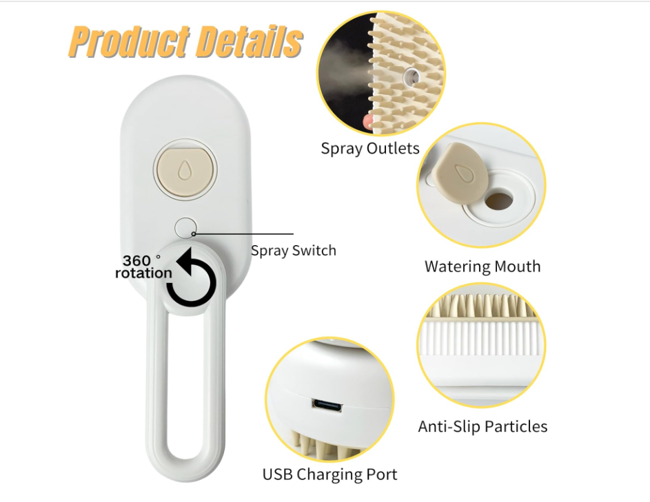 ✨ Cepillo de vapor 3 en 1 para gatos y perros